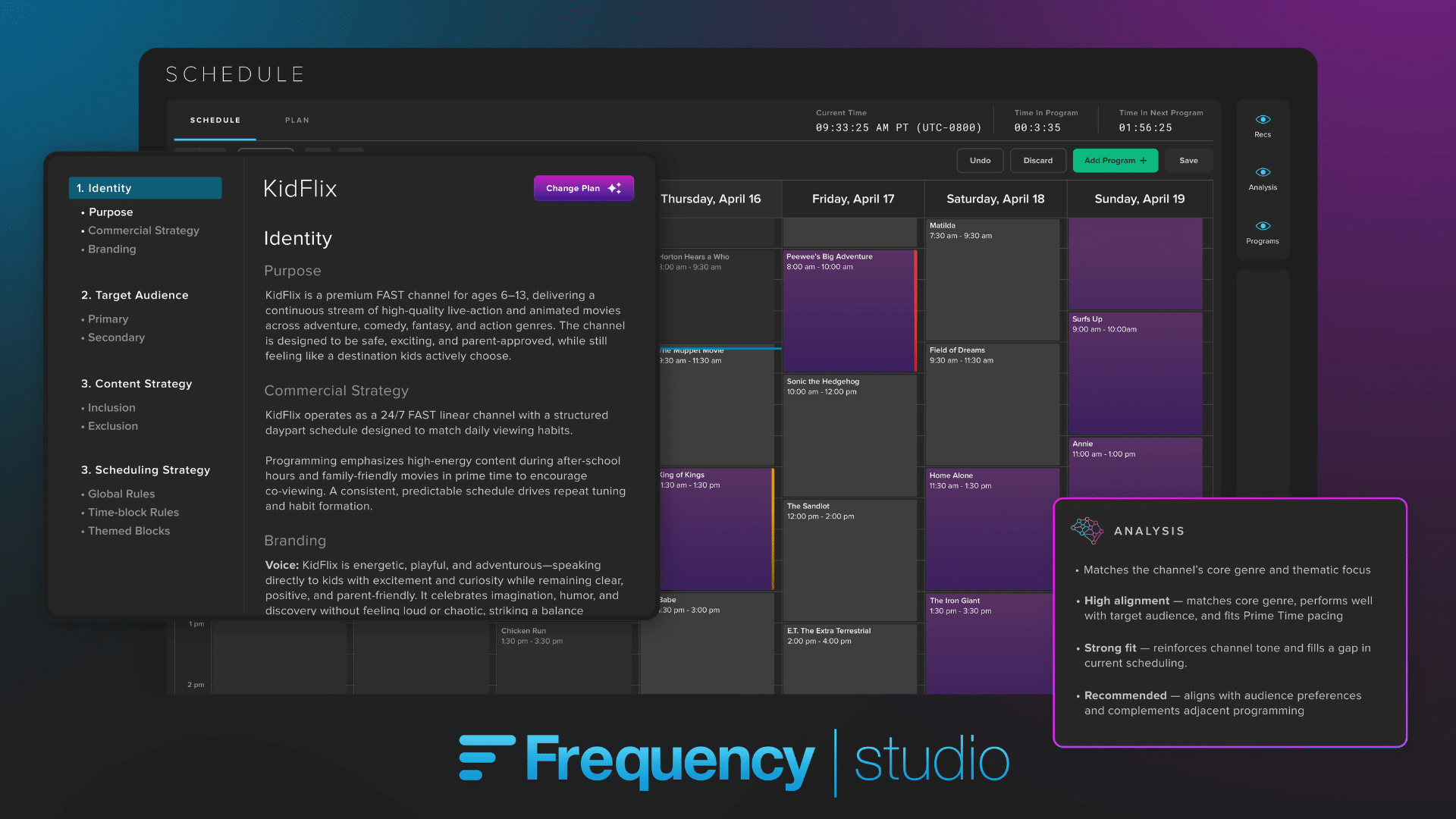 Frequency Studio is now fully accessible to AI agents across every core service – including content management, scheduling, distribution, graphics, and live operations – enabling channels to be created, programmed, and optimized at scale with dramatically reduced manual involvement.