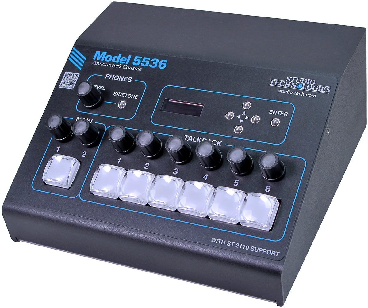 LAS VEGAS, MARCH 24, 2025 – Studio Technologies, manufacturer of high-quality audio, video, and fiber-optic solutions, will unveil three new announcer consoles that feature ST 2110 support at NAB 2025 (Booth N2672). The new announcer consoles each offer advanced features but differ in the number of talkback sender (output) channels, with the six-talkback-channel Model 5536, four-talkback-channel Model 5534 and two-talkback-channel Model 5532.